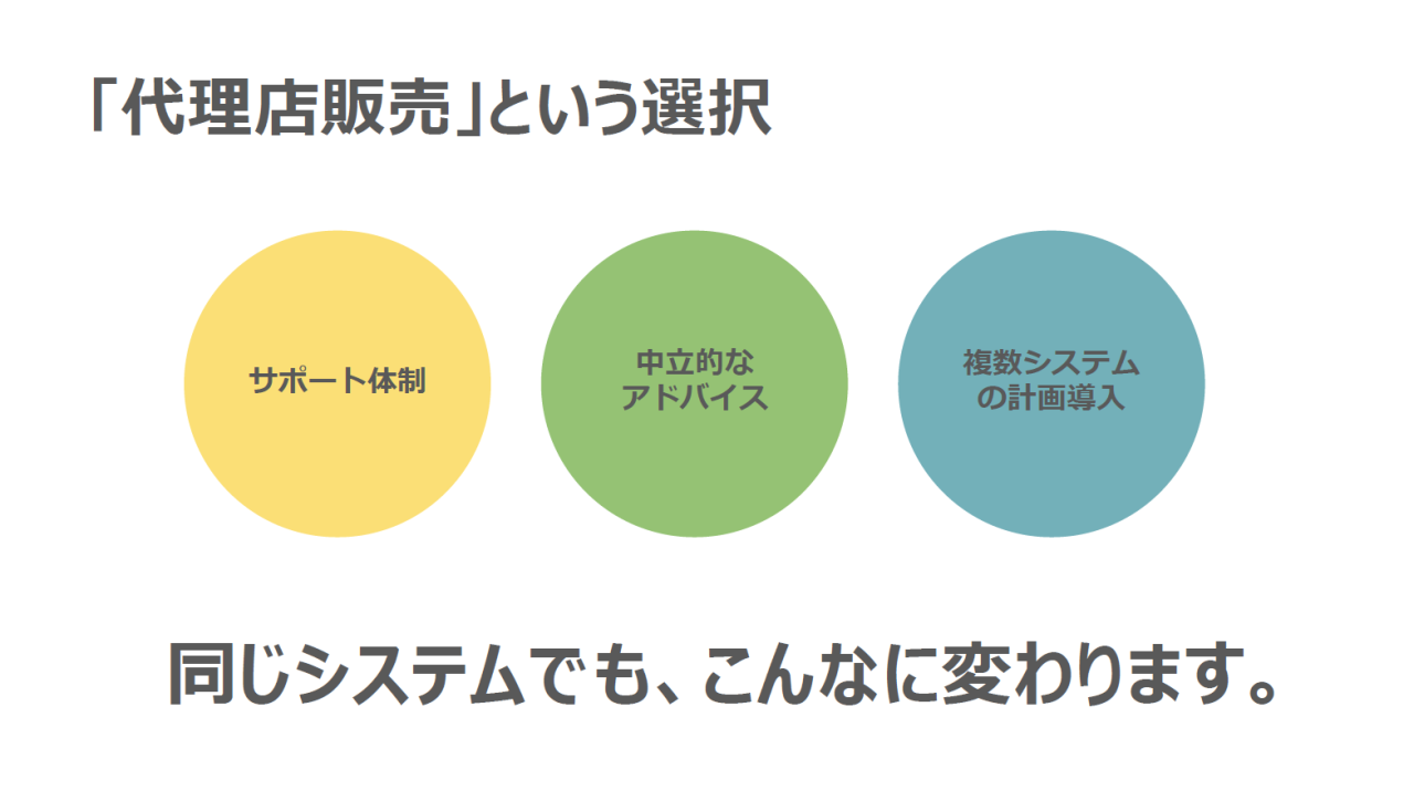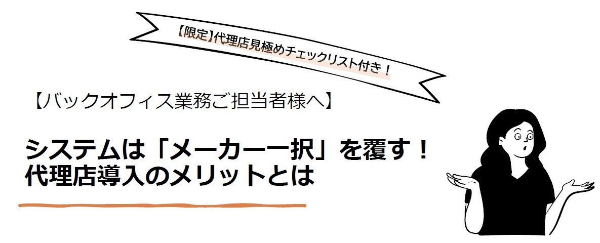 システム導入を検討する際は、どのシステムを選ぶかだけでなく、導入先の選定も重要な要素となります。代理店を通じた導入には多くのメリットがありますので、ぜひ一度資料をご覧ください。