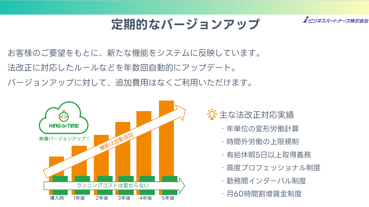 業界で高い評価を得ている勤怠管理システムKING OF TIMEの概要資料です。この資料には機能の詳細やユーザーの声などが含まれており、システムの導入を検討される際に非常に役立つ内容となっています。
