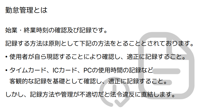 「勤怠管理って何?」「法令違反のリスクとは?」など、基本的なトピックをご紹介しています。